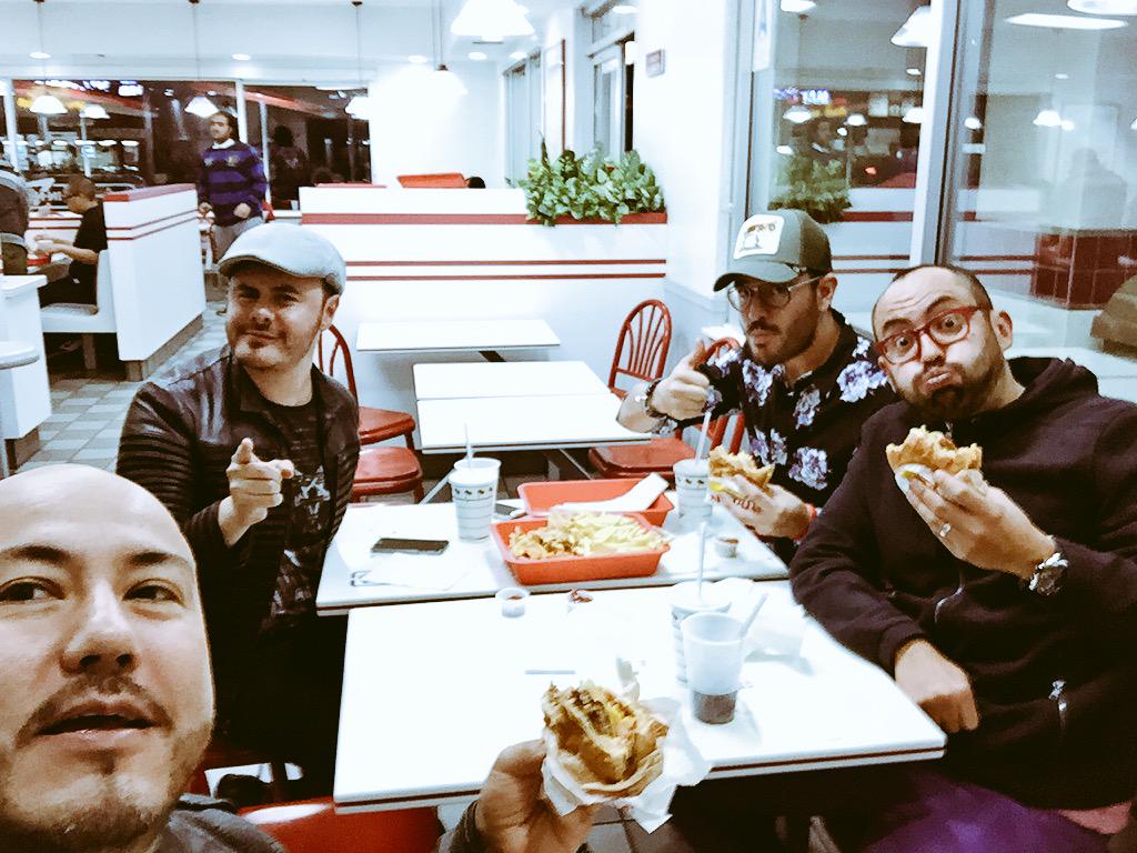Pues nada, aquí casual echando la hamburguesa con mis queridos @JoseLuis_Roma @MikeManager e @ivanperaltaramo