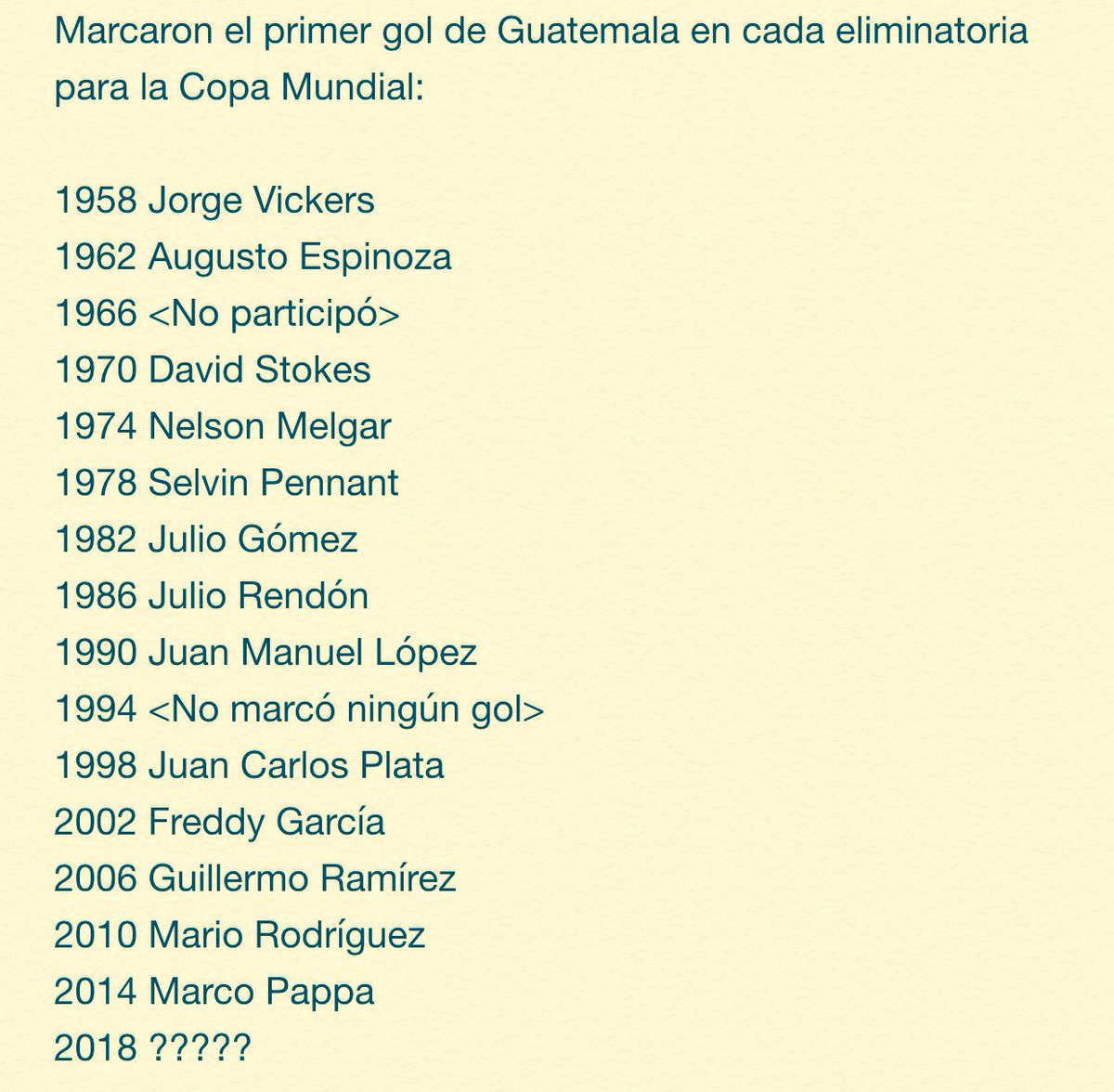 Faltan 3 horas. Estos son los autores del primer gol de #GuatemalaPower en cada Eliminatoria para la Copa Mundial: