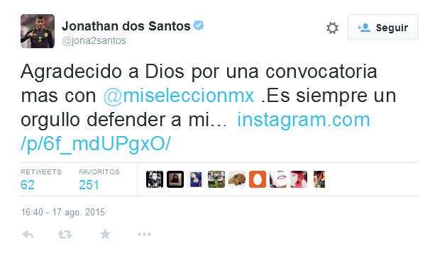 Del plato a la boca, se cae la sopa. Jonathan Dos Santos había twitteado esto. Hoy, no está convocado