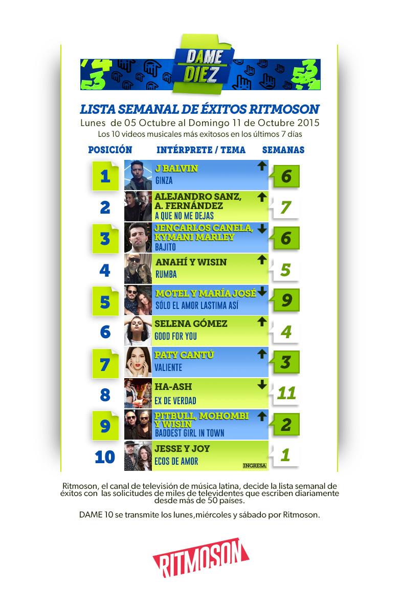 Mañana sale nueva lista de #DameDiez voten mucho hoy ritmoson.tv/programas/dame… vamos rumbo al #1